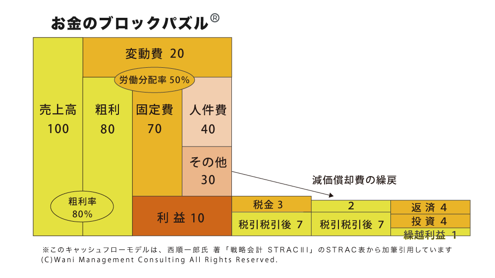 ③会社の全体がわかるお金のブロックパズルと連動しているので即経営判断に使える。